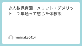 少人数、小規模の保育園に2年間通った体験談です。保育所選びに迷われている方、小規模園に決まって不安のある方に実際に子どもが通っている中で親として感じたメリット、デメリットを紹介しています。子どもが少ないからこそ手厚い保育が受けられると思います。