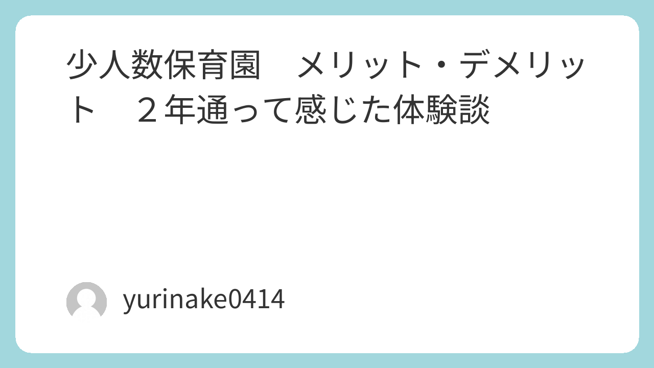 うちの子どもは現在、全園児で20名前後の小規模な保育所に通っています。